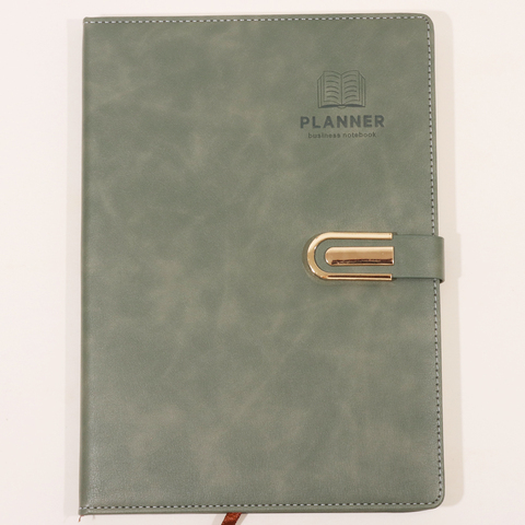 Inglés en relieve logo A5 cubierta dura de cuero hebilla magnética agenda de planificación personalizada calendario maestro planificación cuaderno