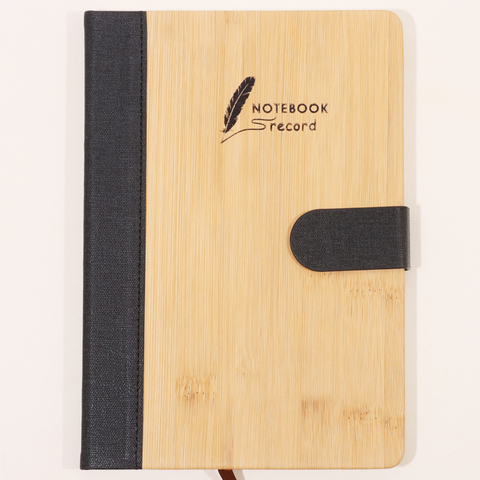 Venta directa de fábrica de cuaderno A5 de bambú de madera, diario, juego de regalo con logotipo personalizado, planificador con bolígrafo